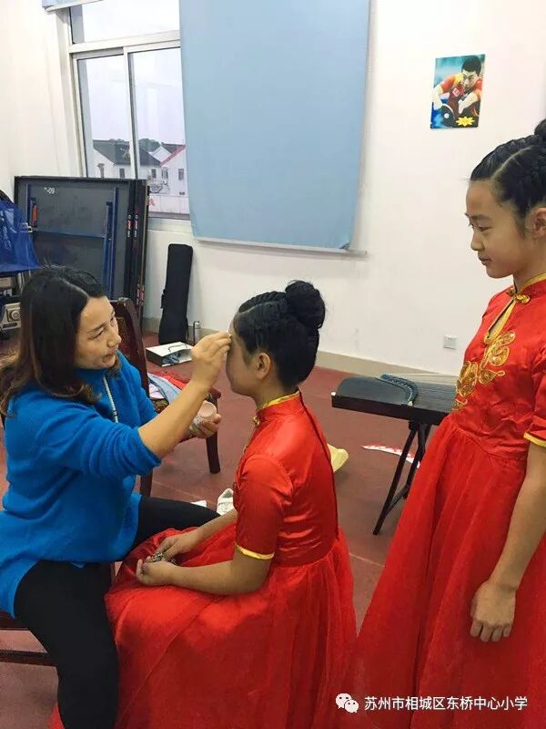 为了增加舞台效果“小演员”和老师们6:15分就开始化妆