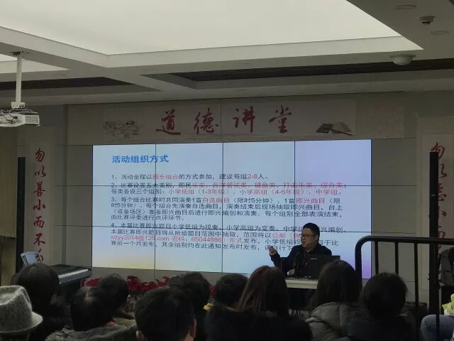 2018年1月6日,第四届北京市青少年“玩转音乐”比赛暨京津冀青少年“玩转音乐”邀请赛——关于比赛即兴内容公益讲座,在朝阳区青少年活动中心207报告厅顺利举行。参加讲座的家长、学生及教师近200余人。
