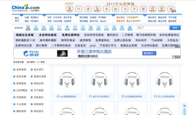这是我们常见的国内免费音效库,他可以让你很快捷的获得质量比较适中的音效文件,这些音效制作H5网站是足够的,但是要强调的是,免费的音效大多是没有版权备注的,而且质量通常不高,如果拿来做商用是有一定侵权风险的。
