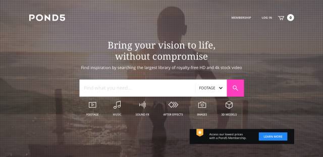 Pond5 是一个综合素材网站,提供照片、插画、音乐、音效、AE模版和3D模式、视频等资源,该网站的音效素材也非常丰富,其素材也分为免费和付费内容,当然,这些内容都是有版权保证的。