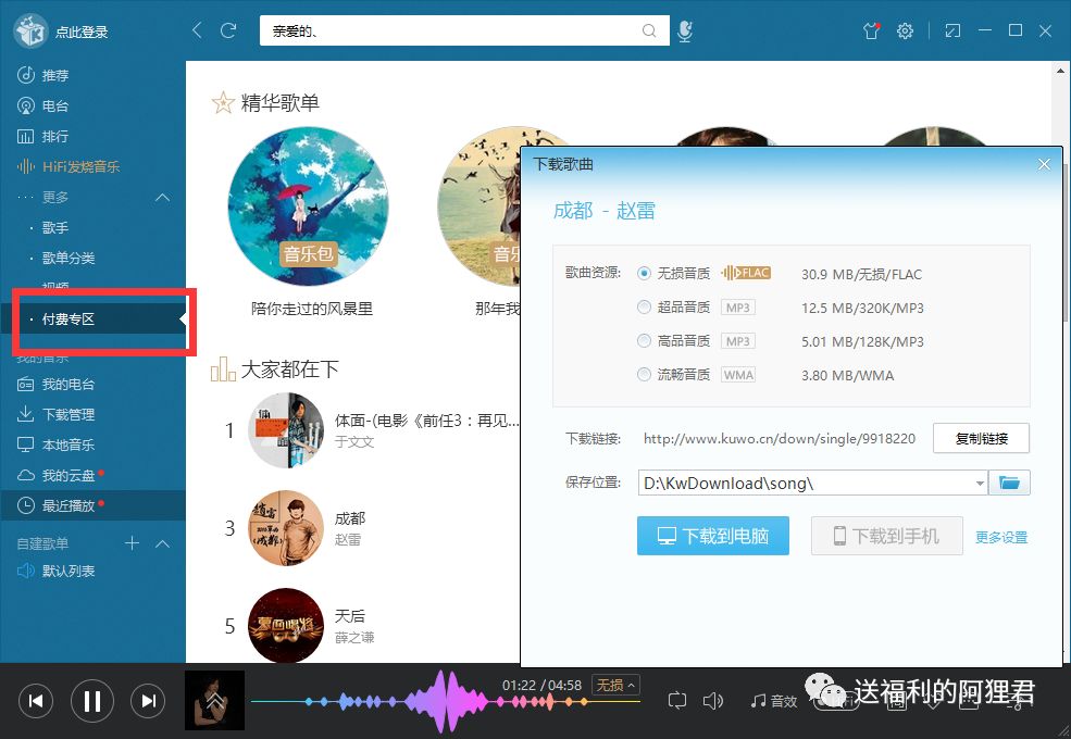 软件可以免登陆破解付费版,无损音乐、版权付费歌曲,全部免费下载