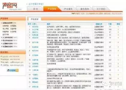 该网站有各种声音作品类型,包括广告片、专题片、宣传片、企业彩铃、企业专题介绍、游戏配音、少儿配音作品、汽车广告、医药广告、门店促销、产品直销片、公共语音等,可全方位为教师提供声音材料,运用到课程中。