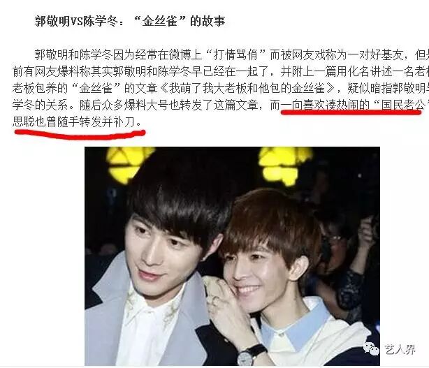 他们两人是不是另一起娱乐圈,或者说文人圈的炒作,我们不知道,郭敬明是不是同明恋,我们也不知道。