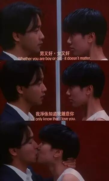 他爱上一个人,刚好他是同性。可能就像他在《金枝玉叶》中对袁咏仪说的那样:“我不管你是男是女,我只知道我好中意你。”