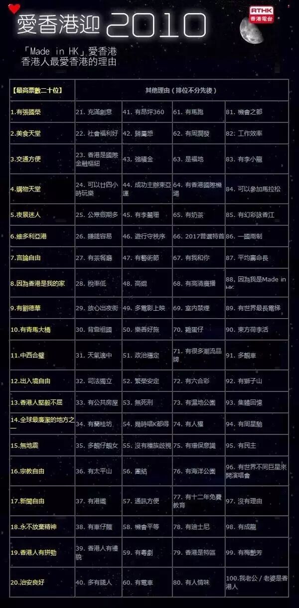 香港电台在2010年曾经搞过一个“香港人最爱香港的理由”的票选,排在第一的是:有张国荣。