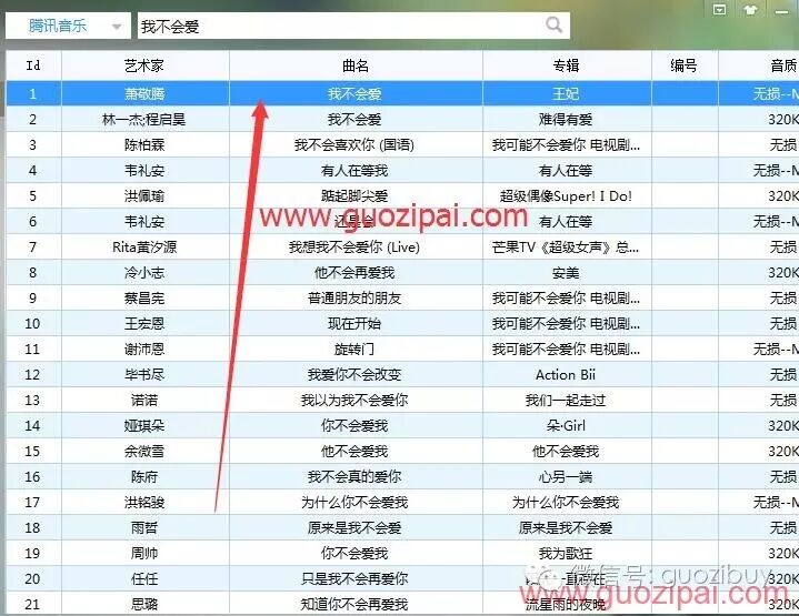 下面我给大家演示一下,我用萧敬腾《我不会爱》这歌曲在QQ音乐上是付费的,我们来试试能不能下!