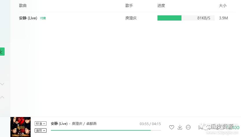 1.双击音乐试听,在音乐播放了三分之二的时候,你直接跳到三分之二左右的页面,点击下面操作按钮中的下载,选择标准音质