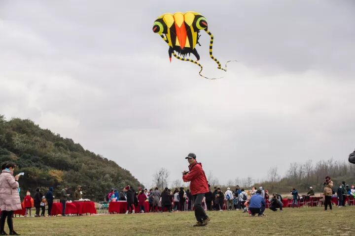 那是可以照亮天际的风筝,这是由杭州市风筝协会的风筝达人们带来的,当天他们还放飞了各种特色各异的风筝。