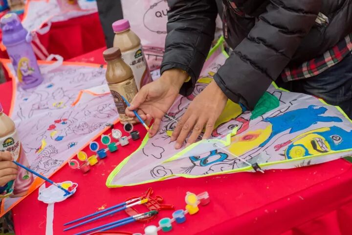 光看别人飞你是不是也心痒痒,贴心的主办方早就准备好了手工风筝,任你DIY。