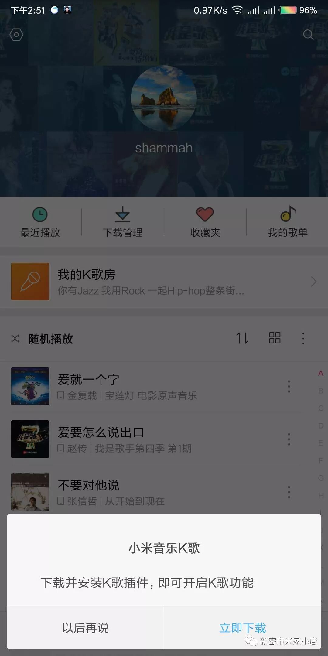 眼尖的小伙伴应该会发现有个K歌功能,难能可贵的是他不像某些音乐app做成集成,而是外挂app,引导到应用商店进行下载。