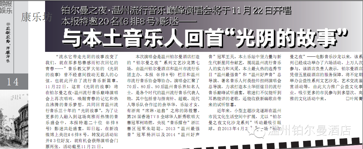 | 铂尔曼之夜·温州流行音乐巅峰演唱会将于11月22日开唱 | | 与本土音乐人回首“光阴的故事” | | |