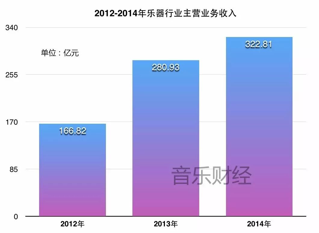乐器市场在近几年也迅猛发展,2014年我国乐器行业规模以上企业220家,乐器行业累计增加值增速为9.8%;年主营业务收入322.8亿元,同比增长10.35%;利润总额同比增长19.04%。可见大众对于音乐教育的需求正在不断增强。