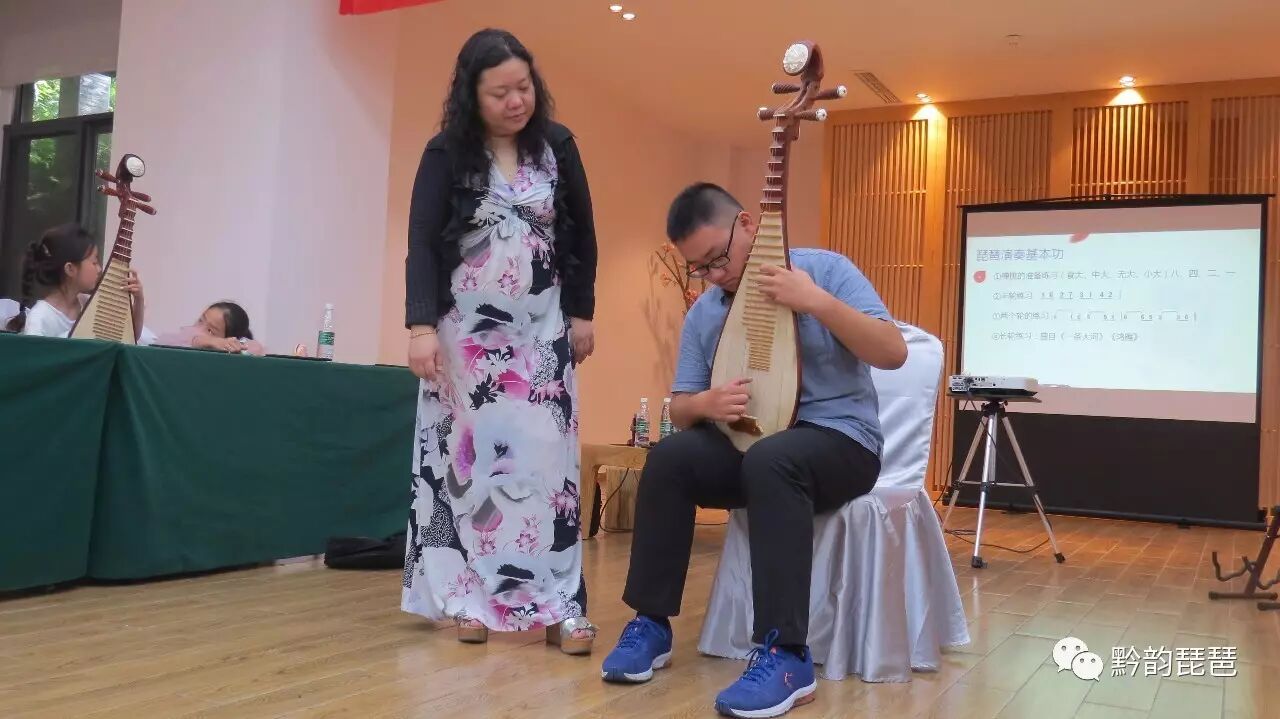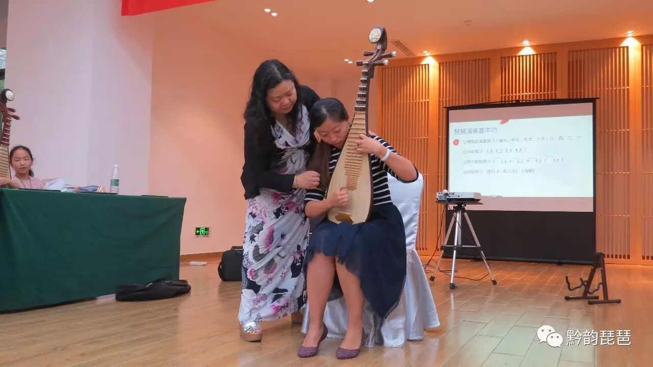 为了让大家看得更清晰,老师抱琴走到大家中间进行讲解及示范