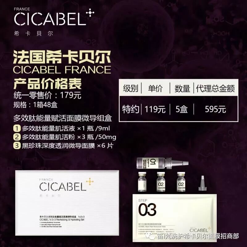 希卡贝尔多效肽能量赋活面膜微导套盒含有1+2+3三部分:
