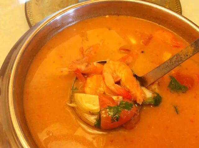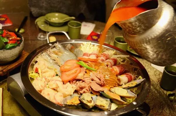 一一这款冬荫功火锅经过改良后,加入了特调的汤底作为火锅汤汁没有那么呛口,对于第一次喝冬荫汤的小伙伴还是比较可以接受的。入口最先察觉到的是香茅,而后是青柠的酸味,接着是泰式的辣,最后才是甜。