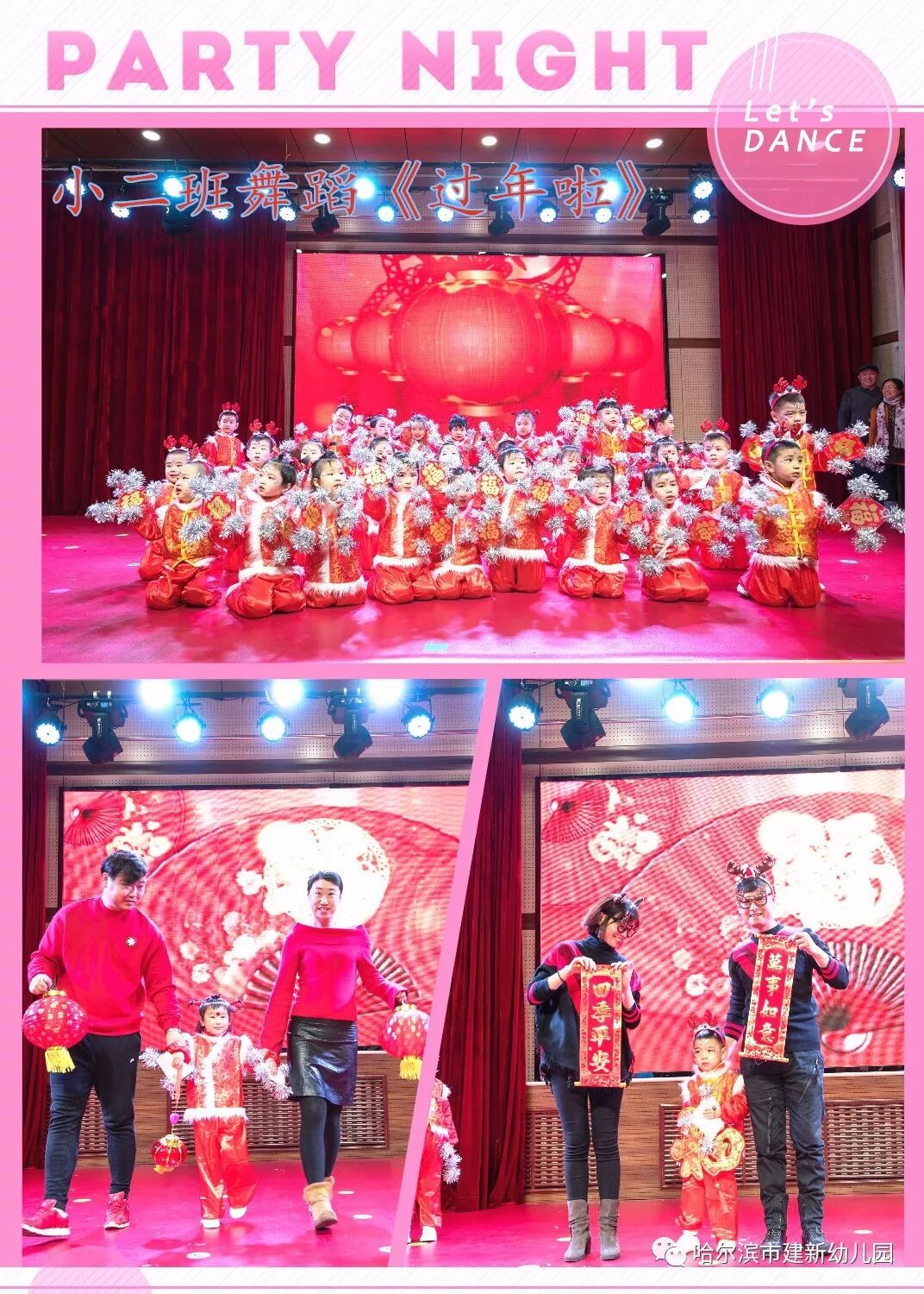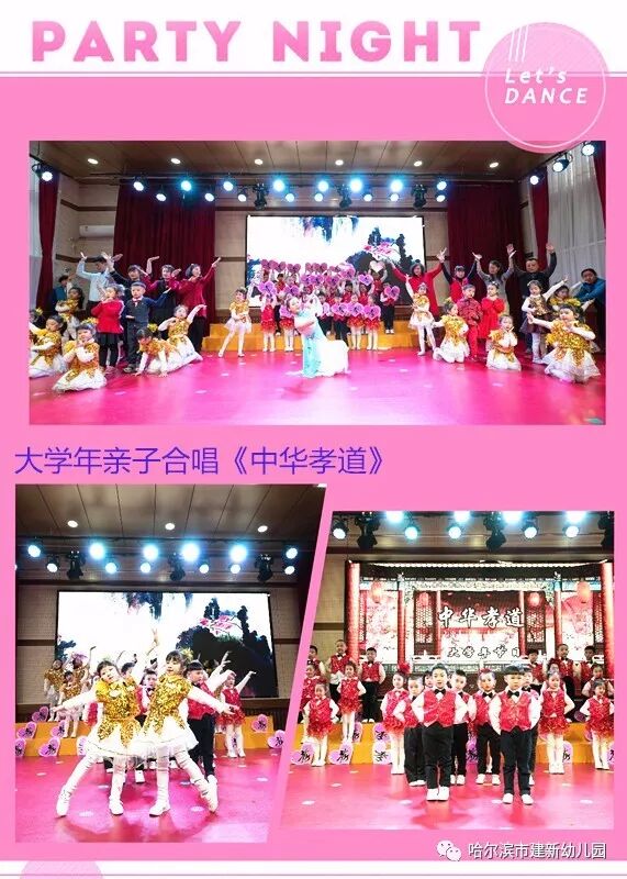 精彩的表演、好听的歌曲、生动的舞姿,家长热情的参与更是联欢会的一大亮点。家长们和小朋友们共同表演了《时光花瓣》、《炫舞贺新年》、亲子合唱《中华孝道》等节目。家长们的表演,为孩子们做出了良好的榜样,同时,家长们也深深体会到建新幼儿园是孩子们健康成长的乐园。通过亲子活动家长真正走进童心,放松心情,增进了家园、父(母)子感情,让孩子切实感受到与父母、同伴共同活动的乐趣。