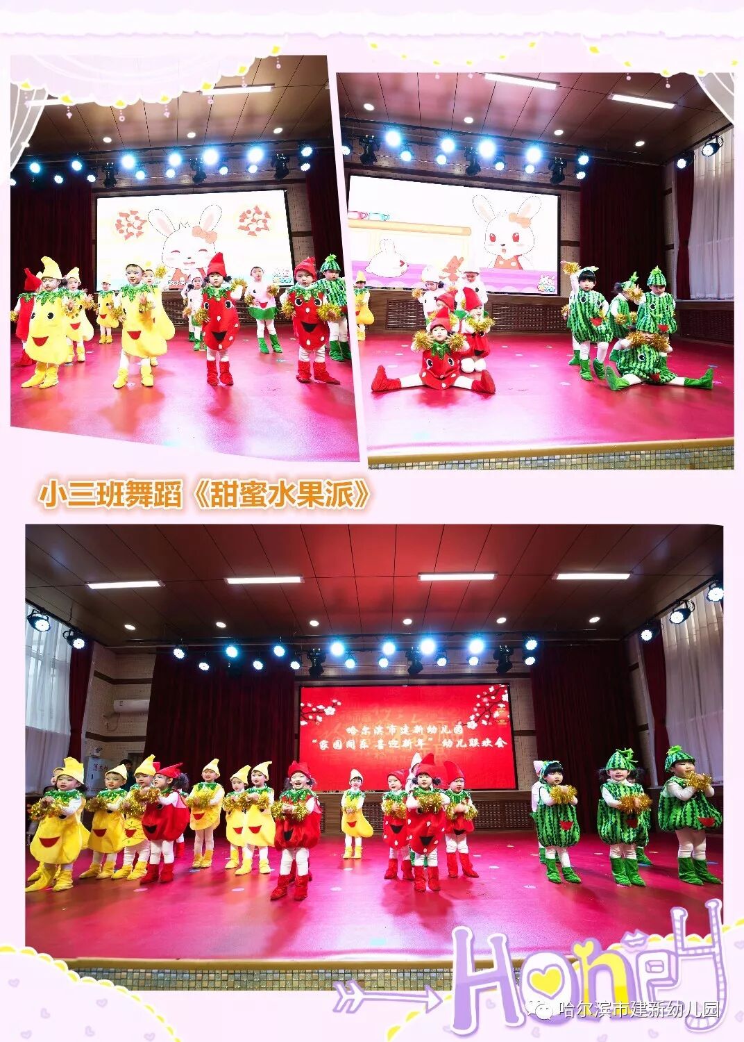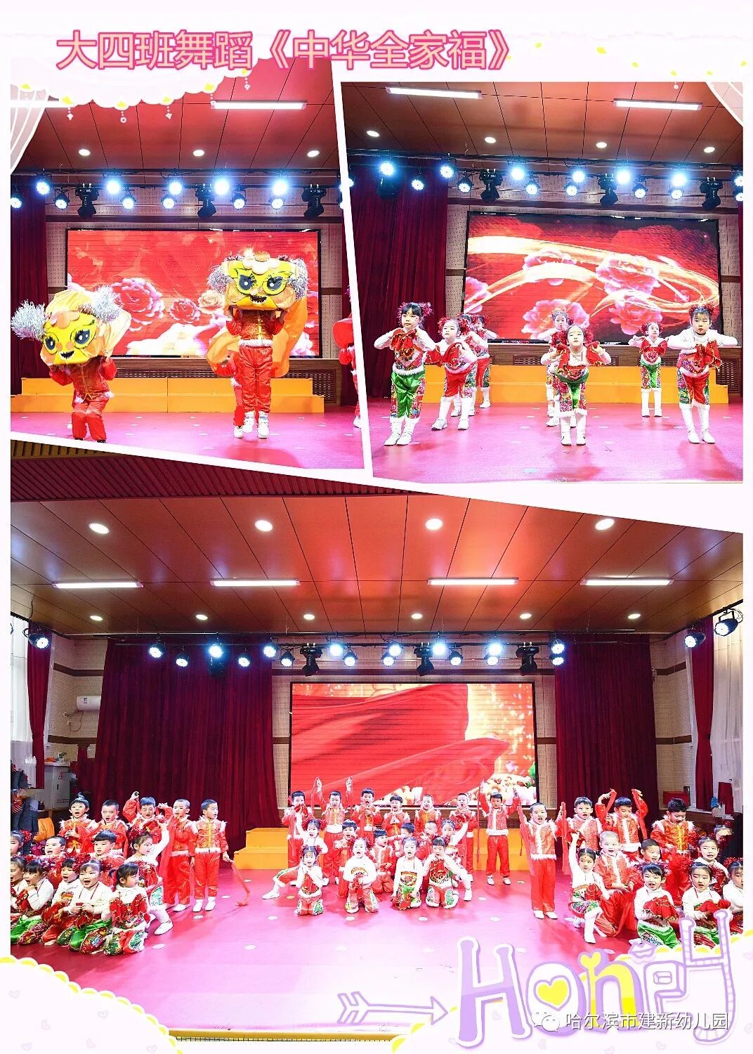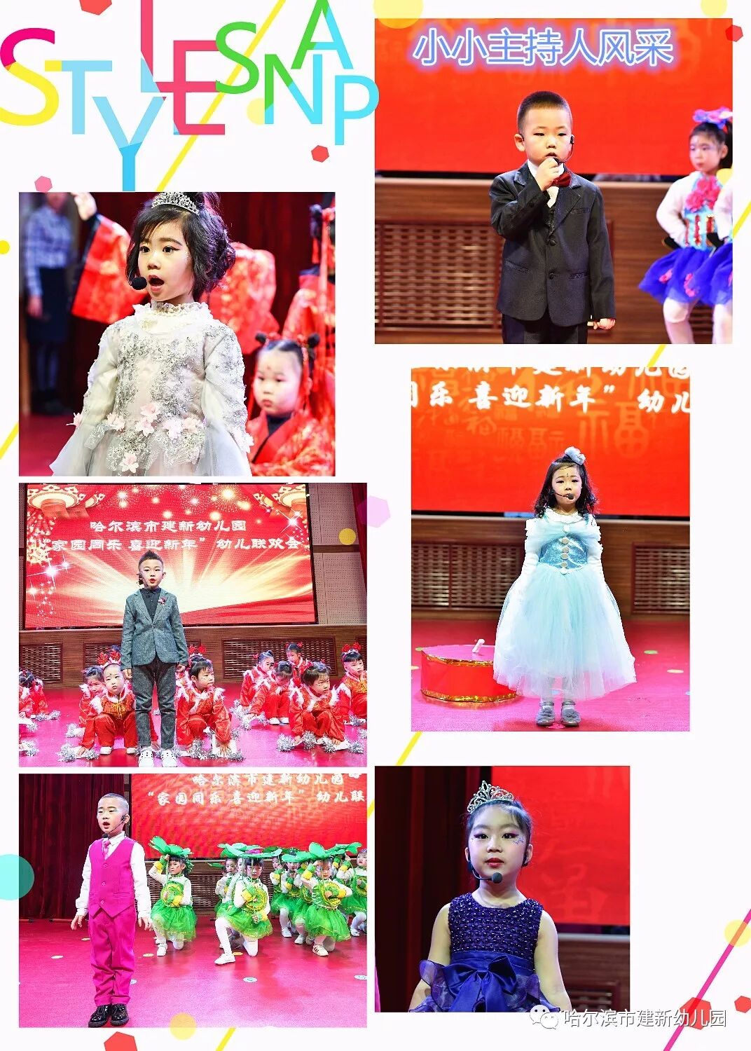 小主持人们落落大方、报幕词语言生动、富有童趣。,促进幼儿体智德美全面发展”为主旨,教师为幼儿编排了《中华全家福》、《说唱中国红》、《过新年》、《甜蜜水果派》、《幸福你就拍拍手》等舞蹈,教育孩子们从身边做起,从小事做起,沐浴在文明的阳光下正在茁壮成长。