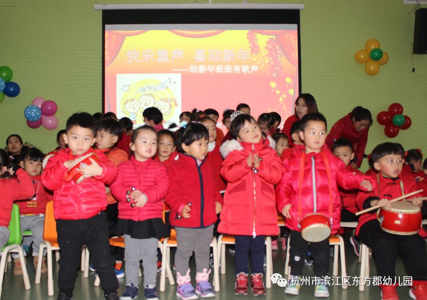 上午9点,东方郡幼儿园全体教职工欢聚一堂,随着园长妈妈对本次迎新系列活动的致辞,在小朋友一片欢乐声、掌声中,此次“快乐童声,喜迎新年”之班班有歌声活动拉开序幕。