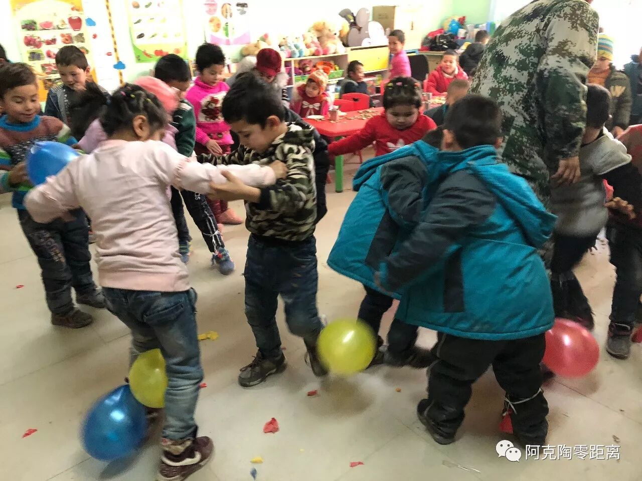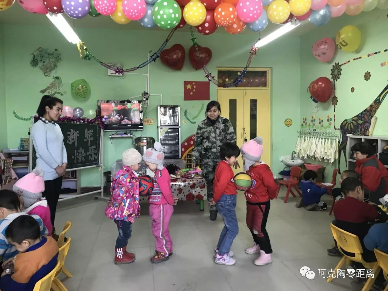 为给孩子们度过一个难忘的迎新年活动,自治区纪委支教老师们早早开始策划,起草活动方案,学着剪窗花、做手工、精心地布置教室,五彩缤纷的背景墙、色彩绚丽的拉花······充满了新年氛围。订制生日蛋糕、购买饮料、饼干、糖果,竭尽所能地准备丰盛的食品;支教老师们还自费购买了手套、图书,作为新年礼物送给班里的每一名孩子们。努尔比亚园长深有感触:“非常感谢支教老师们,他们总是那么地用心、用爱、用情,平时教学想法设法调动孩子们学习积极性,注重孩子们养成教育,遇到节点、早早策划,开展丰富多彩的活动,还自发地为孩子们准备礼物,我非常感动,谢谢他们。”