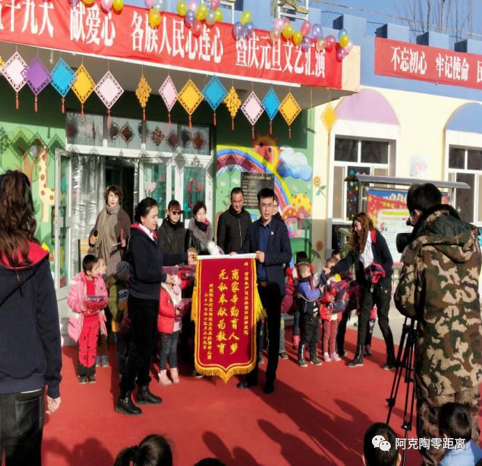 来自新疆生产建设兵团第四师医院的支教干部代表医院爱心基金委员会向孩子们捐赠了158套园服,让孩子们在寒冷的冬天感受到社会各界的关心、关爱和温暖。幼儿园的教职工们为了表达感谢,特意为第四师医院赠送了锦旗。