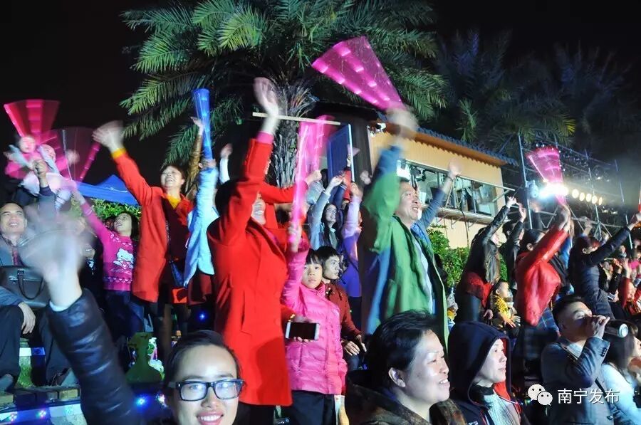 来自南宁市十二县区和开发区的群众演员担纲主角,轮番上台,与在场市民共同倒计时,迎接2017年的到来。现场满是辞旧迎新、喜庆祥和的节日气氛~