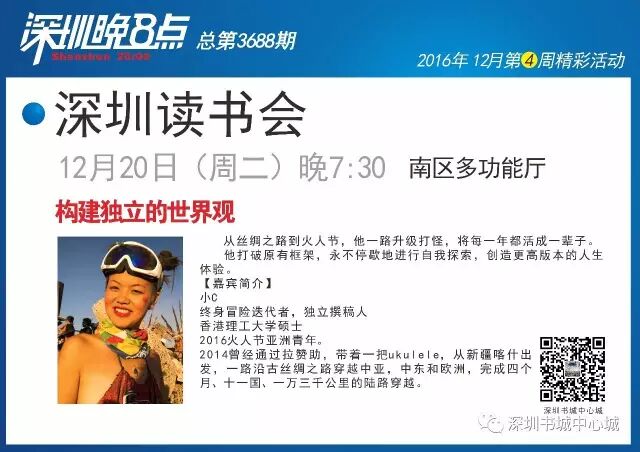 深圳中心书城深圳晚8点公益文化活动,免费参加