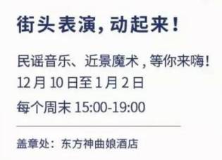 由小镇文化庙会、小镇民谣节等多个主题组成,汇聚原创文化艺术商品,色香味俱全的餐饮美食,丰富多彩的街头音乐和魔术表演以及难得一见的世界大师吉他展览,更特邀新歌声总冠军蒋敦豪助阵平安夜民谣演唱会。