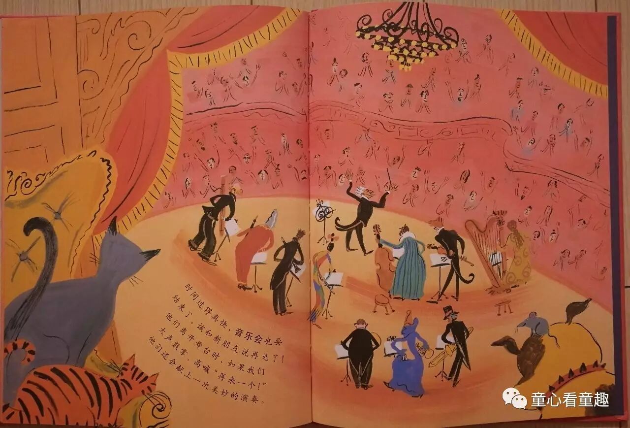 小动物们似乎也被镇住了,悄悄躲在演奏家的脚旁,一脸警惕。