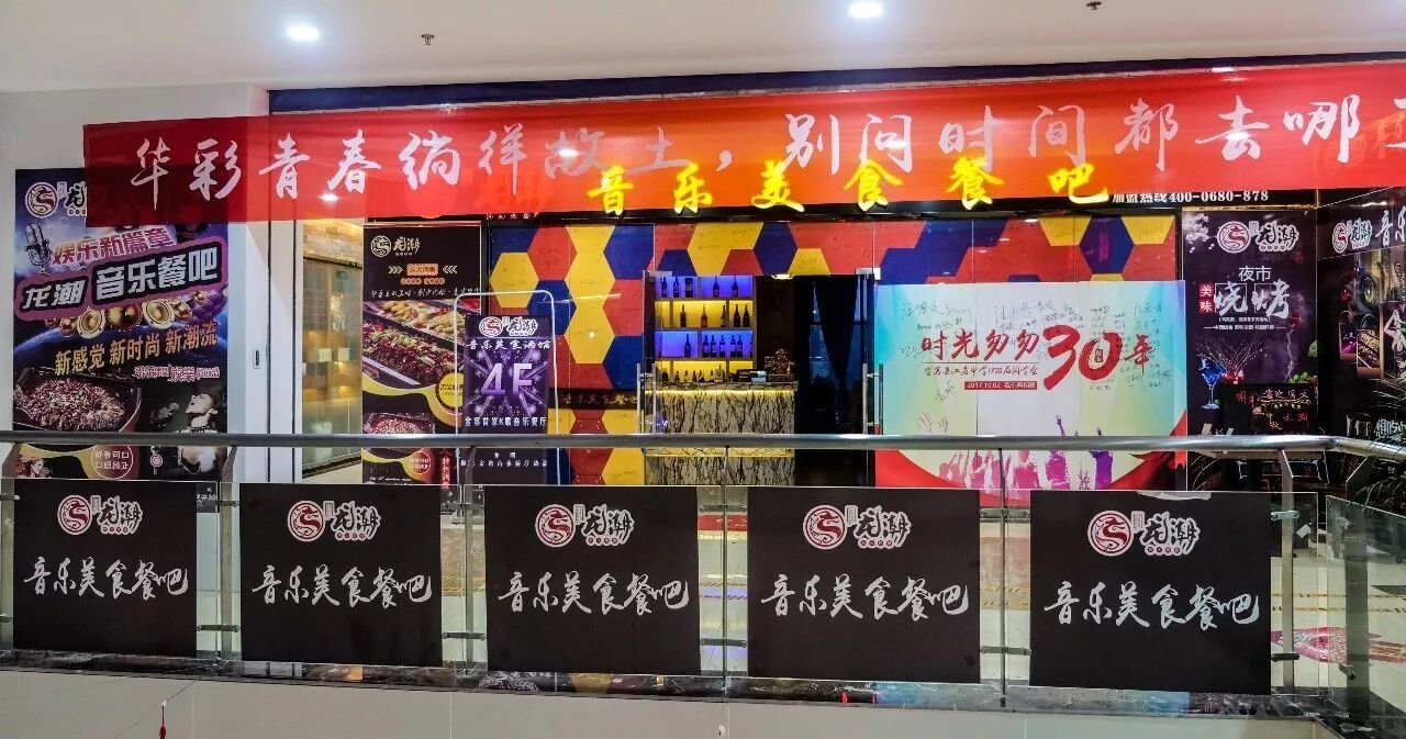上面写着龙潮音乐美食餐吧