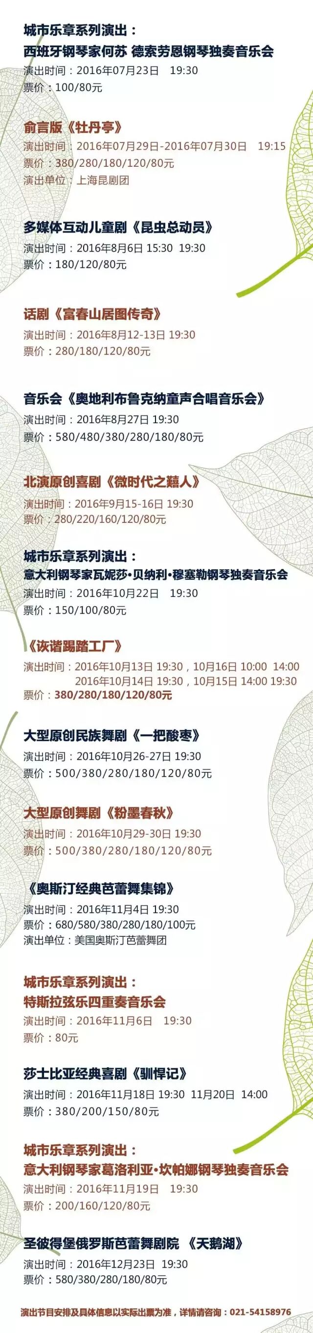 2.本活動適用於2016年城市樂章系列內所有演出場次。