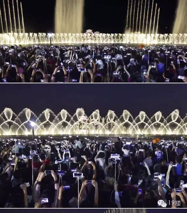 于是乎,昨天本计划喷放的曲目有《the magnificent seven》、《梁祝》、《爱的力量》、《倾国倾城》等,但因为人流众多,考虑到安全问题,七点后的喷泉场次就被取消了!