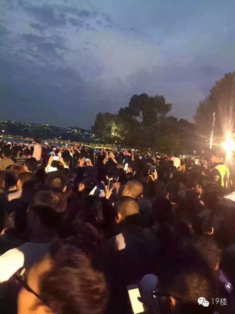 据统计,晚七点,广场及周边已经聚集了近五万游客。为确保安全,同时也满足大家的观看心情,西湖音乐喷泉在试喷放一场后即停止,并立即通过广播和喊话器等措施疏散游客。晚上八点,湖滨三公园一带已恢复节假日常态。因为这次节假日游客量大,人员集中,从安全第一的角度出发,西湖音乐喷泉即日起暂停喷放,具体时间待安保方案完善后再适时喷放。