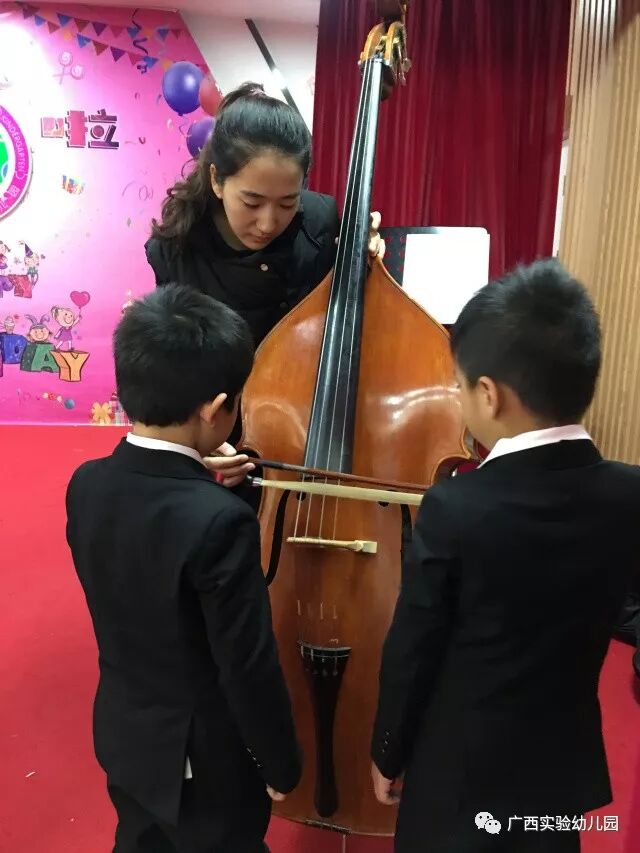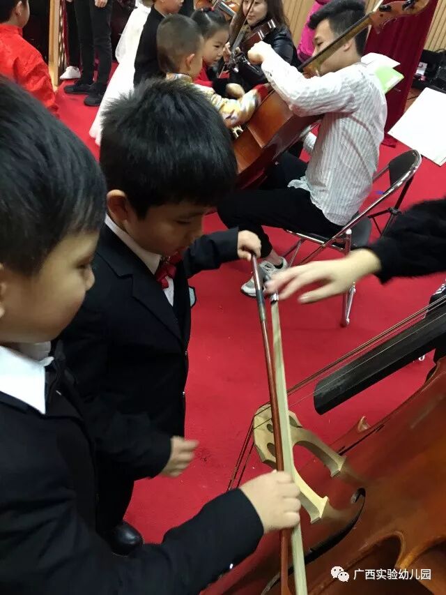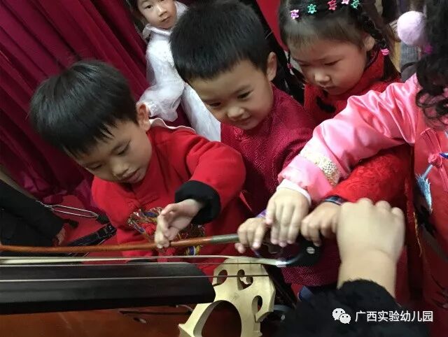 小朋友们还跟乐器近身接触,过了把小小音乐家的瘾呢!