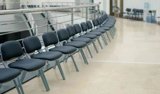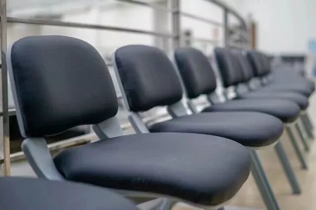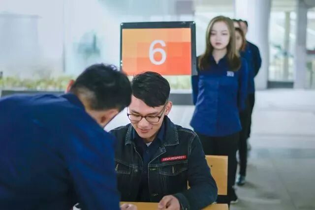 按顺序在试室外指定的座椅上等候,配合报到员工作。