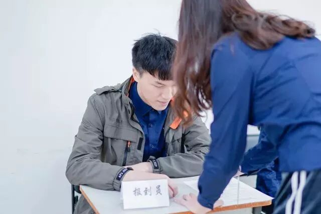 佩戴胸牌,并按胸牌序号重新列队,等待考试安排。