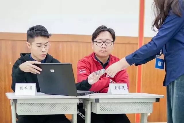 导考员到指定地点将报到组别更换为考试组别并发放考生胸牌。
