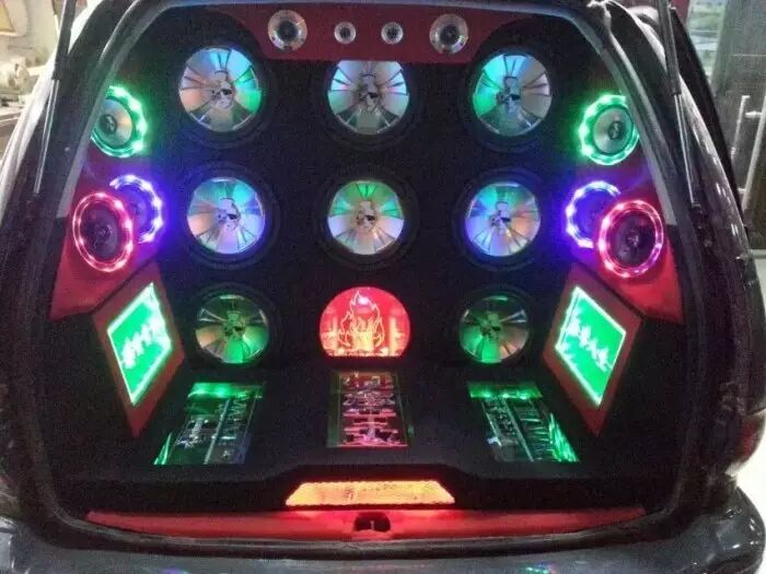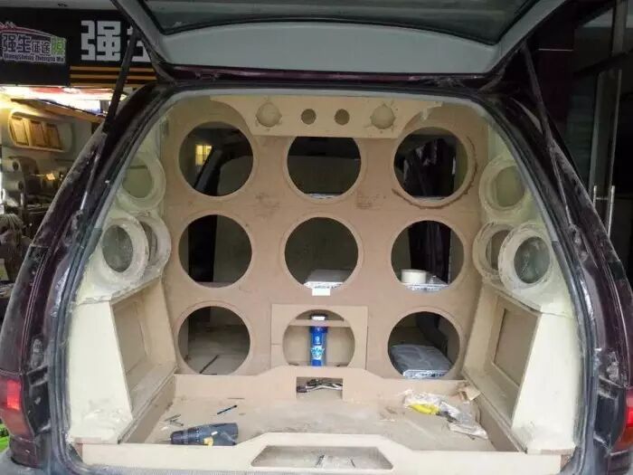 丰田霸道改装音响,配置上,音源改装阿尔派,前声场是一套豪客MC6.2 套装喇叭,外声场是一套豪客MS6.2 套装喇叭和两对豪客MC625 同轴喇叭、豪客号角高音MT1一对,超低音是豪客MS124 12寸超低音八只,驱动功放是豪客MG300.4 四路功放2台、豪客MS400.4 四路功放一台和豪客MS1000.1单路功放2台,还增加三只卡莱1FL电容。以全套美国豪客音响为主旋律的霸道音响系统,尽情演绎美国风摇滚、重金属音乐的精彩,释放你的音乐热情,满足人们对发烧音乐的追求。