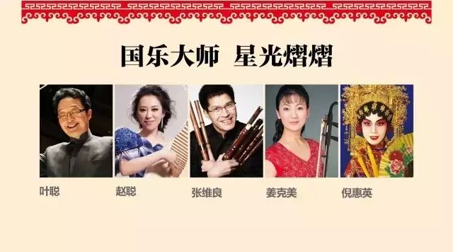 演出在20:00正式拉开帷幕,演出特邀国内顶尖国乐名家加盟,包括“中国笛王”张维良、“五胡美女”姜克美、中央民族乐团琵琶首席赵聪以及著名粤剧表演艺术家倪惠英等。