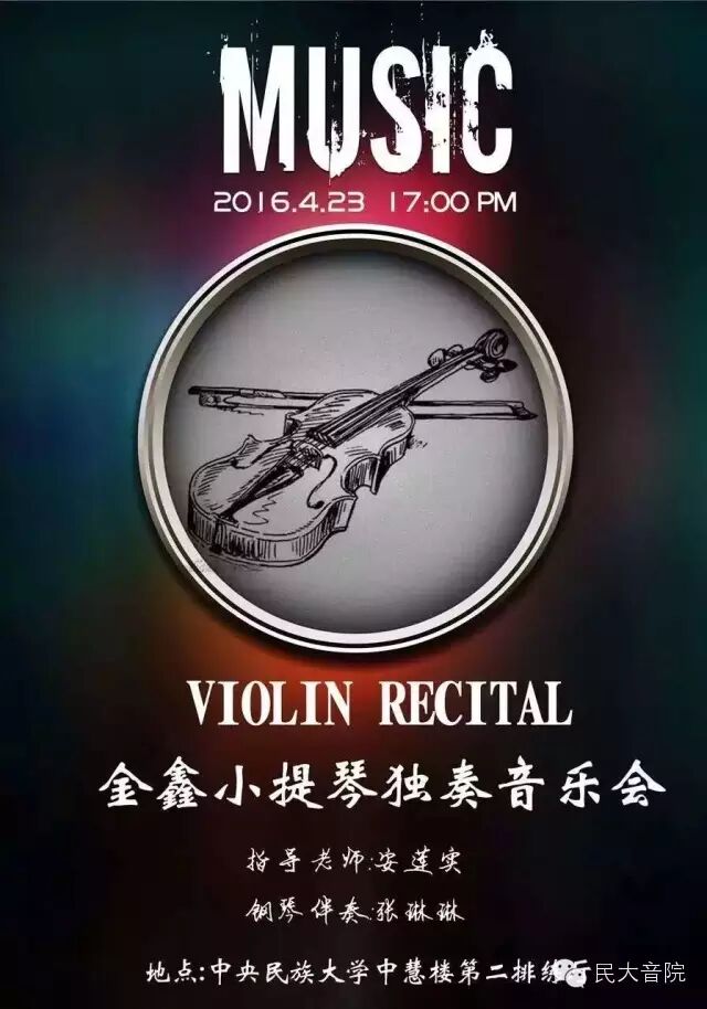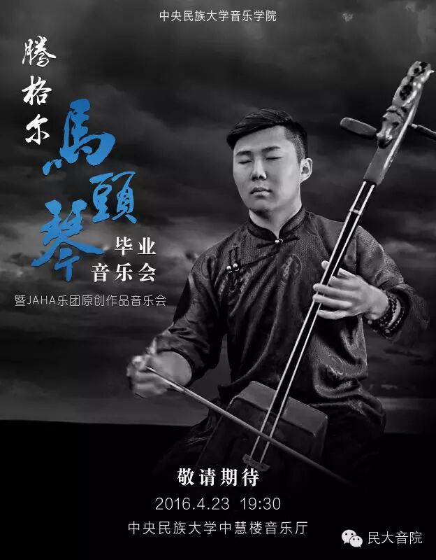 1阿龙高娃马头琴毕业音乐会时间:2016.4.23(星期六)14:00地点:中慧楼第一排练厅2腾格尔马头琴毕业音乐会时间;2016.4.23(星期六)19:30地点:中慧楼音乐厅3张孝星二胡毕业音乐会时间:2016.4.23(星期六)19:30地点:中慧楼第一排练厅4金鑫小提琴毕业音乐会时间:2016.4.23(星期六)17:00地点:中慧楼第二排练厅5李盟伊小提琴音乐会时间:2016.4.23(星期六)19:30地点:中慧楼第二排练厅6高寒火不思毕业音乐会时间:2016.4.24(星期日)14:00地点:中慧楼第一排练厅7张梦成笙毕业音乐会时间:2016.4.24(星期日)19:30地点:中慧楼第一排练厅