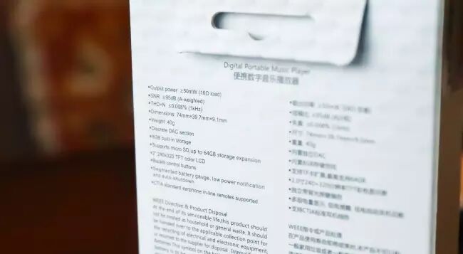 M3的造型方正,显得很是简洁,附送的耳机为平头塞,单元尺寸较小,能够适合大部分人的耳道尺寸,女生使用也不会觉得耳塞较大。整机尺寸为74 mm× 39.7 mm× 9.1 mm,重量仅40g。