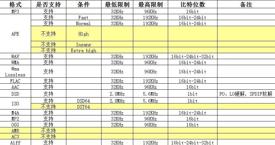另外一种无损音频格式WMA LOSSLESS我们支持到32-96Khz,16-24bit。而苹果无损AIFF支持32-192KHz,16-24bit。