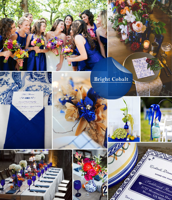 钴蓝色在2009年春季色彩中曾经非常流行,掀起了一股强势的复古风潮,最近强势回归,虽然在传统意识里我们喜欢把钴蓝色与夏天联系在一起,或许在冬季主题婚礼上把钴蓝色与银色、以及华丽浅莲红结合,也能创造出非凡的视觉效果。