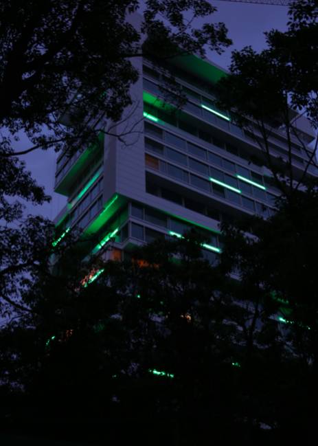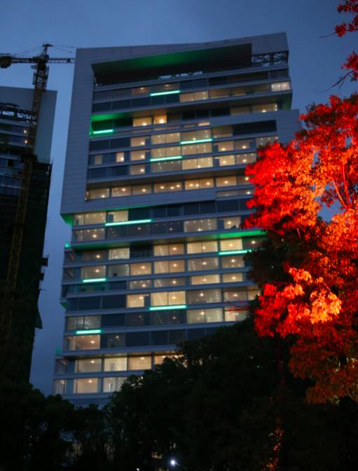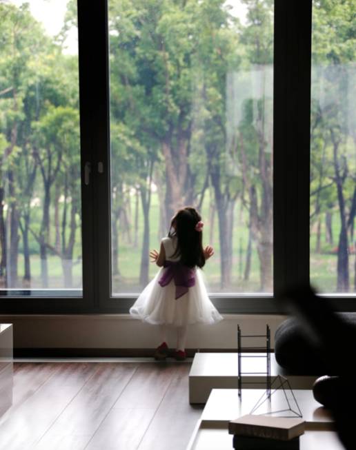 抬头看了下周围的环境,。森林里是静谧的住宅楼。对的,三栋纯落地窗的玻璃建筑,但确实是住宅。