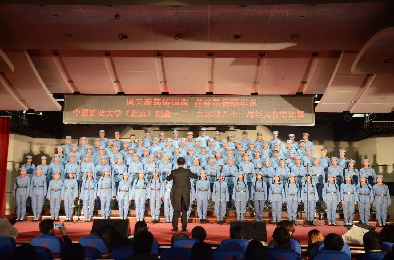 2016年12月9日,在一二•九运动八十一周年之际,中国矿业大学(北京)在科技会堂四层隆重举行以“风云激荡铸国魂,青春昂扬颂华章”为主题的合唱比赛。党委组织部部长邹得志、党委宣传部部长杨洪兵、学生工作处处长安宇、各学院党委书记、副书记,团校委以及各院团委老师出席并观看了此次比赛。