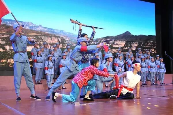 ▲ 岭头乡代表队以铿锵有力的节奏唱响《保卫黄河》,形象地刻画了游击健儿为保卫黄河、保卫全中国而战斗的壮丽场景。