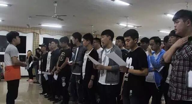 (由于场地等各种客观因素,他们不能穿上演出服,站在舞台上高唱红歌。然而他们也没有离开这支队伍,而是选择默默的付出。谢谢你们。)