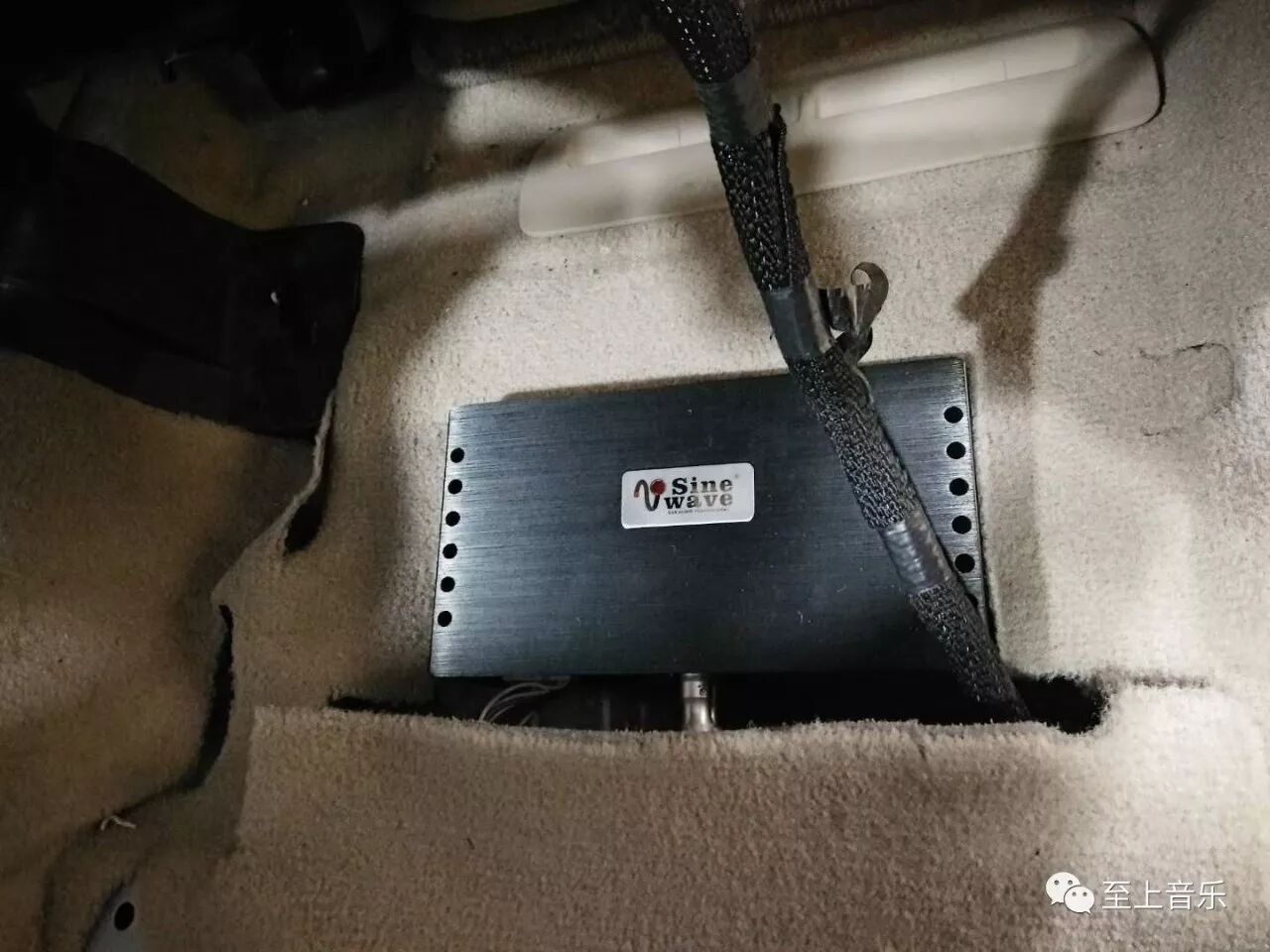 英国正弦波D6 DSP音频处理器装在座位底下。正弦波D6除了具备功放输出功能之外,出色的音频处理功能和调音功能,让音响效果得以完美重现。