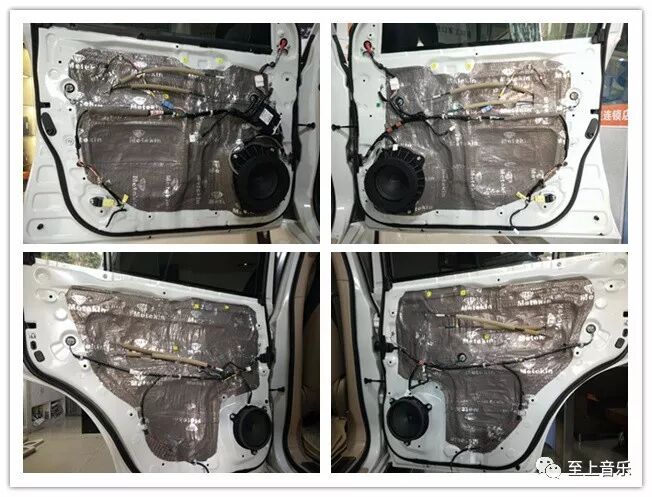 针对四门隔音处理,提高车门钣金刚性,从而减小共振噪音,密封的车门还能削减风噪入侵,打造一个相对安静的聆听环境。除此之外,车门隔音处理后的车门如同一个独立箱体,有利于提升喇叭的音质效果。