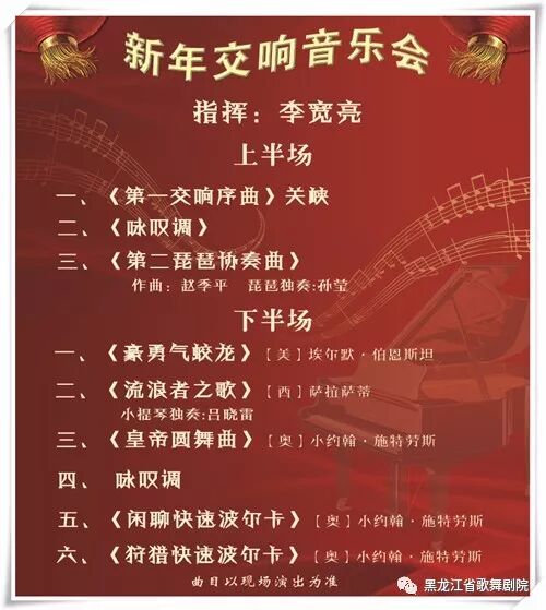 目前,在黑龙江省歌舞剧院交响乐团可实行“私人订制”,数百首中外经典作品,任由市场和观众随时选择。海纳百川、博采众长,是他们始终如一的胸怀和愿望。多年来,众多中外著名的指挥家、演奏家、歌唱家都曾与该团有过密切友好的合作。如,李德伦、黄晓同、严良堃、陈夑阳、卞祖善、王钧时、姜金一、俞丽拿、盛中国、斯特恩[德]、.桑基[美]、阿米尔[美]、马葆龄[美]、萨曲[西班牙]、张培豫[奥]、洪侠、龙希、杨晓宇、郎朗等。该团还曾多次代表国家和我省赴境外演出,其足迹遍及日本、阿尔及利亚、土耳其、俄罗斯、香港等国家和地区。由其参与演出的歌剧《图兰朵》《茶花女》获得文华奖的大型原创歌舞《中华吟》,,由其独立演出的大型交响音乐会《黑土之声》和一年一度的《新年音乐会》等都曾给专家和观众留下深刻的印象。