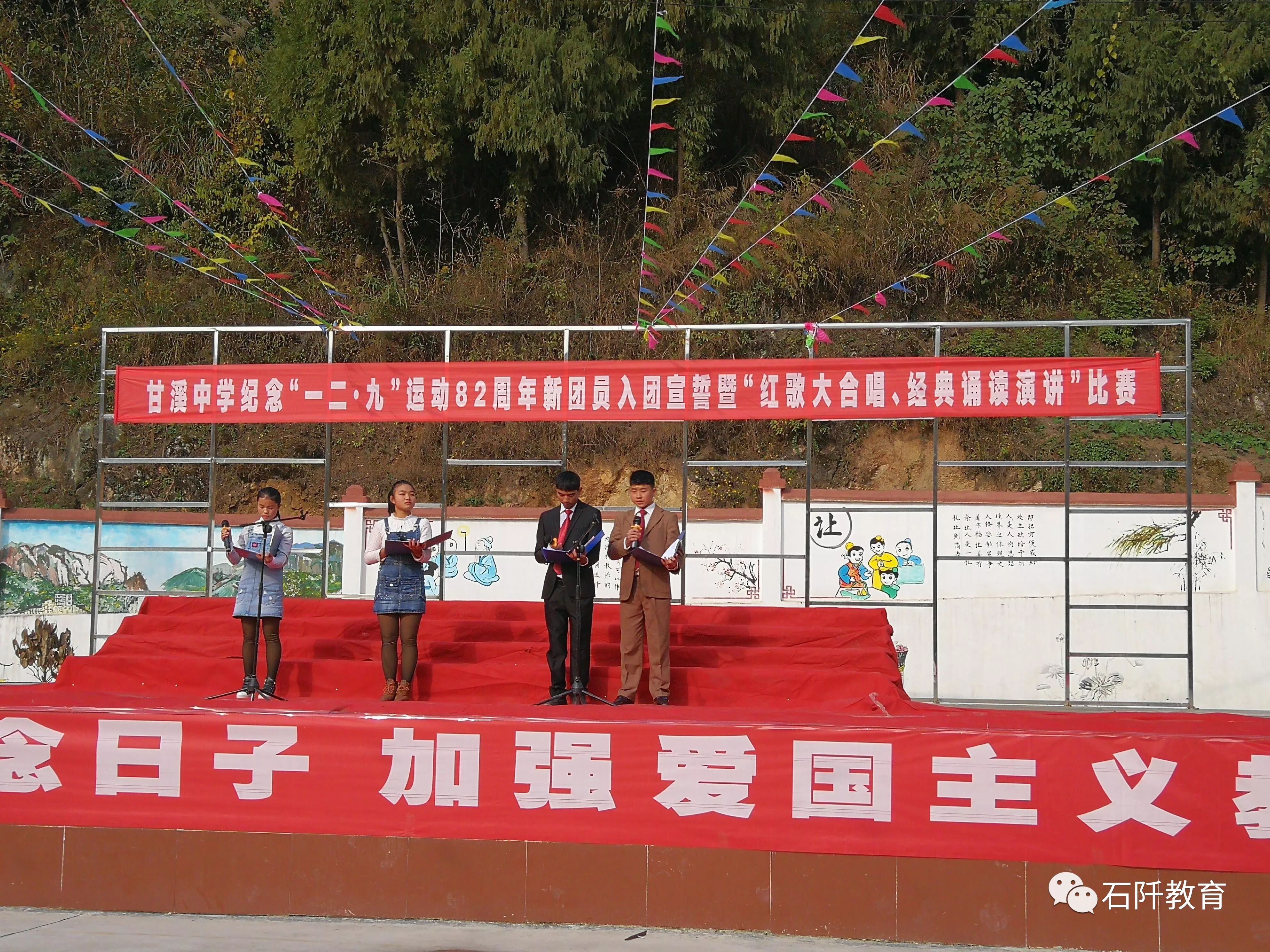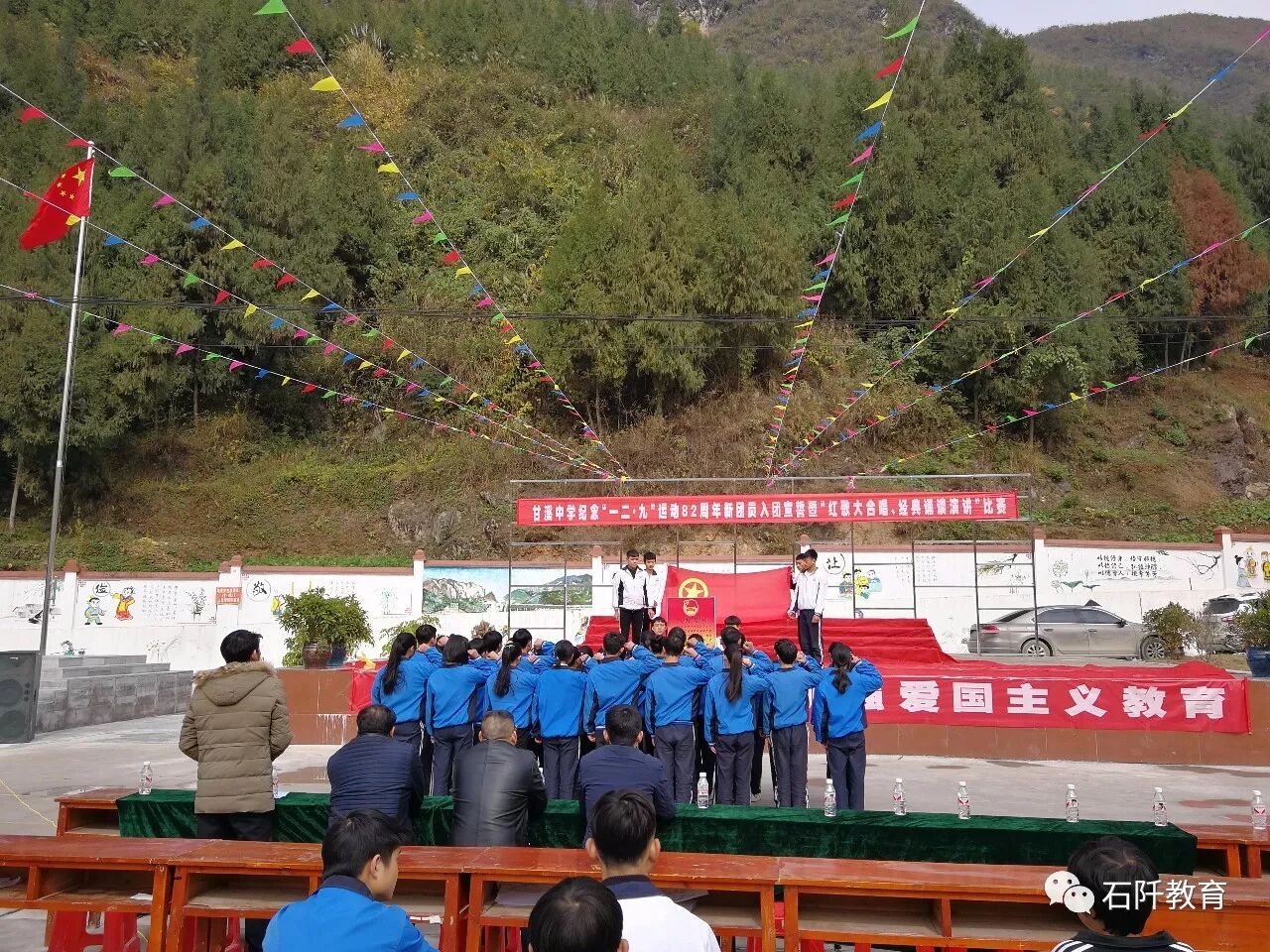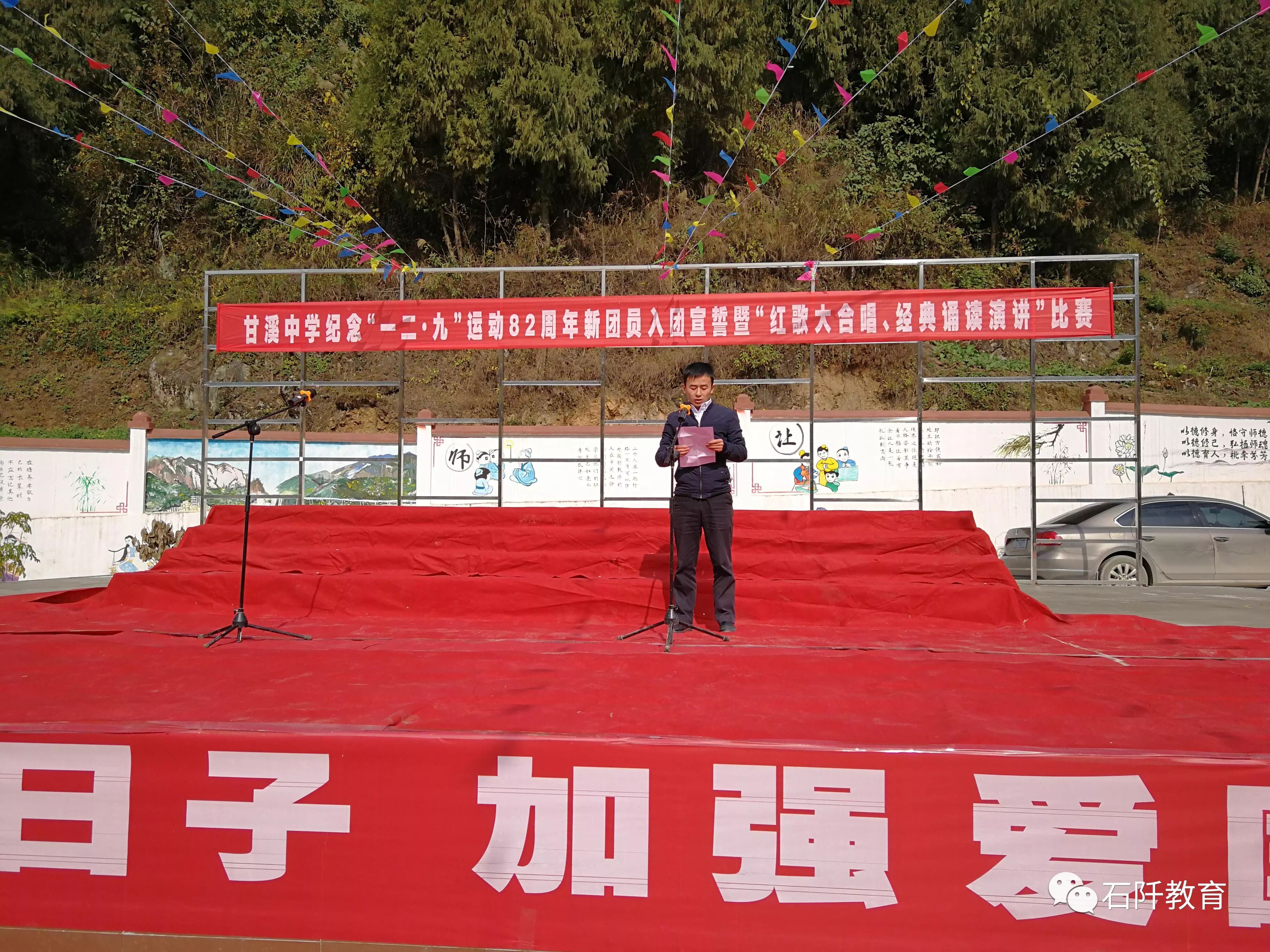 副校长致了开幕词,对“一二•九”运动发生的历史背景作了简要介绍。一场铿锵有力的宣誓后,新老团员代表分别从自身角度作了发言。乡团委周书记对35名新团员的加入表示热烈的欢迎,同时对所有青少年学生提出了要求并给与期望.,周书记热情洋溢的从我国现阶段经济、科技在世界所处的地位,所面临的挑战而激励大家不忘初心,牢记使命,朝着伟大的“中国梦”不断前进。乡教办李以彦主任语重心长地给所有师生勾勒了我乡教育的宏伟蓝图,预祝本次活动取得圆满成功!